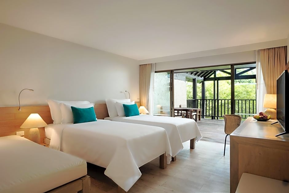 Dining at the resort is a culinary delight, with two on-site restaurants serving up a range of delectable dishes. The resort's signature restaurant offers a fine dining experience with a menu that showcases both local Thai flavors and international cuisine. For a more relaxed setting, guests can enjoy casual dining and refreshing drinks at the poolside bar, perfect for soaking up the tropical ambiance while savoring delicious meals.